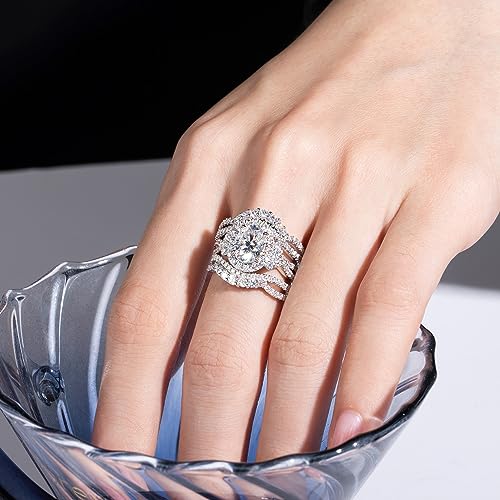 HOT ! CannyCat Oval Cut Moissanite Cathedral Wedding Ring Sets for Women Infinity 3.15 CTTW Moissanite Bridal Set Platinum-Plated Sterling Silver Engagement Ring Curved Guard Enhancers (size-7)