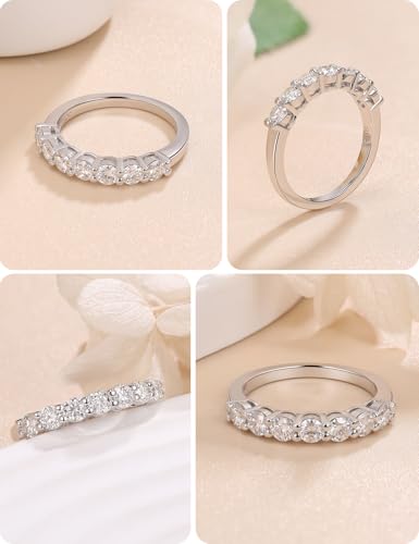 • 【A Timeless and Elegant Style】- The seven moissanite on the half eternity moissanite ring symbolize love, luck, prosperity, happiness, longevity, health, and friendship, which are essential elements of a successful marriage. The moissanite is a precious gemstone that exudes a sense of grace and refinement, a true embodiment of perfection. The 0.7ct brilliant round cut moissanite band is a sparkling masterpiece. Its brilliant fire and scintillation draw you in, captivating your heart and soul.