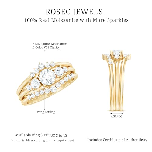 Certified Moissanite 3 Piece Wedding Ring Set, D-Vs1 Quality, Moissanite Designer Engagement Ring With Wedding Bands 5