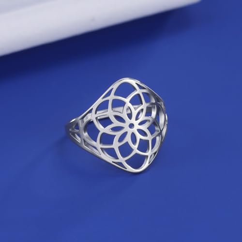 TEAMER Filigree Flower Ring Stainless Steel Elegant Bohemian Finger Ring Wedding Band Ring Exquisite Jewelry for Women 1