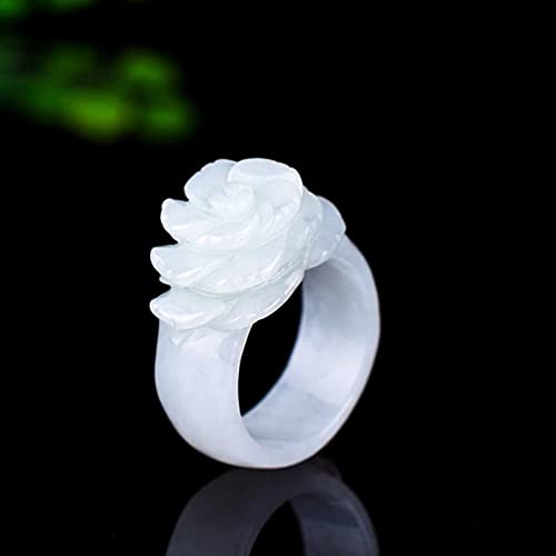 Natural White Jade Ring, Hand-carved Rose Flower Jade Ring, Crystal Clear Jade Stone Ladies Tail Ring, Eternity Ring Jewelry can Bring Good Luck for Women (8) 6