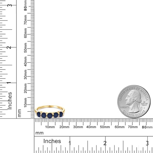 Gem Stone King 18K Yellow Gold Plated Silver 4MM Round Gemstone Birthstone 5-Stone Wedding Band Ring | Five Stone Engagement Anniversary Promise Ring For Women | Available in Size 5, 6, 7, 8, 9 7