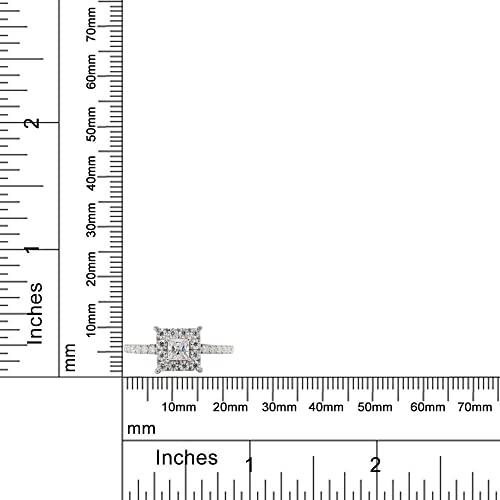SAVEARTH DIAMONDS 3/4 Carat Princess And Round Cut Lab Created Moissanite Diamond Square Halo Engagement Ring In 14k Gold Over Sterling Silver (VVS1 Clarity, 0.75 Cttw) 7