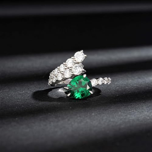 HOT ! Vintage 925 Sterling Silver Simulated Emerald & Cubic Zirconia Adjustable Ring for Women, Engagement Promise Green Droplet Motif Ring for Her