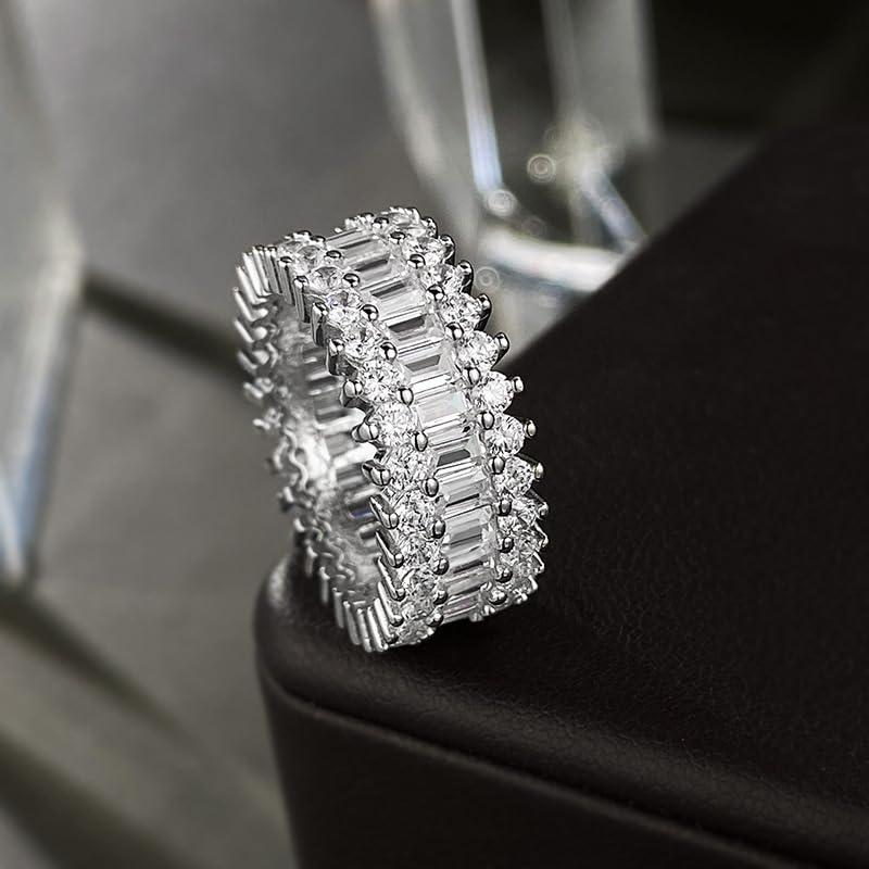 HOT ! 18K White Gold Plated Eternity Rings for Women Cubic Zirconia 7-Stone Wide Wedding Bands Round 3 Rows Promise Size 6-10