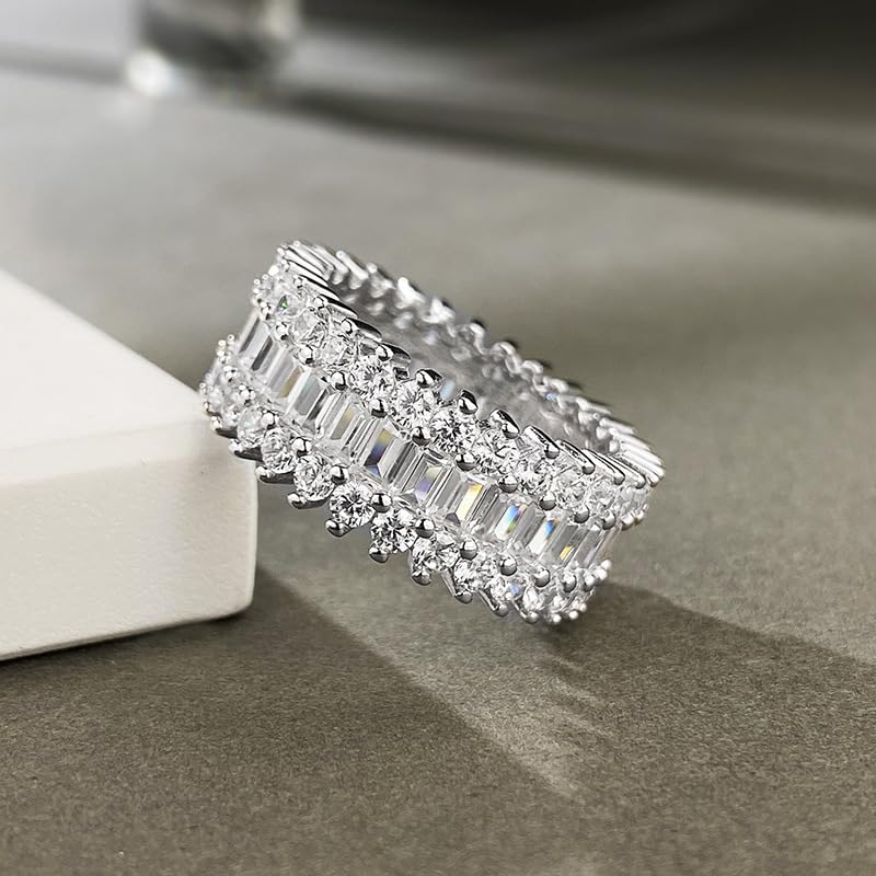 18K White Gold Plated Eternity Rings for Women Cubic Zirconia 7-Stone Wide Wedding Bands Round 3 Rows Promise Size 6-10 1