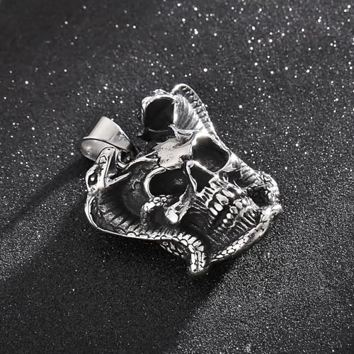Gothic Skull Snake Necklace for Men Women Stainless Steel Silver Tone Cuban Link Chain Punk Retro Mens Jewelry Pendant Necklace 3