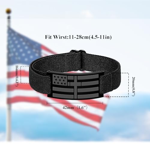 • 【BEST GIFT FOR MEN】A different cross design with American flag stars and stripes, an eye-catching link bracelet, and Bible“Luke 1:37” engraving on the back.