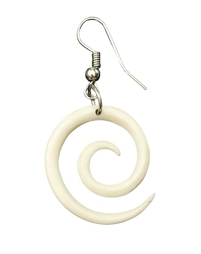 Hand Carved Spiral Bone Earrings, Māori Open Koru Peace Pendant Tribal Bone Carving Earrings Fashion Jewelry GA026 3