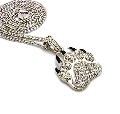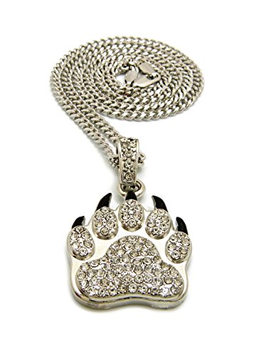 More information about NYFASHION101 Stone Stud Black Accent Grizzly Bear Paw Pendant with 3mm 24" Cuban Chain Necklace