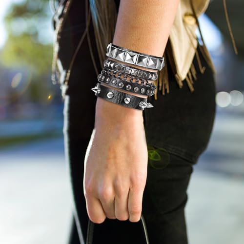 • 【Idea Gift】This punk rock studded bracelet set makes an ideal gift for friends, family, or loved ones on birthdays, anniversaries, or any other special occasion.
