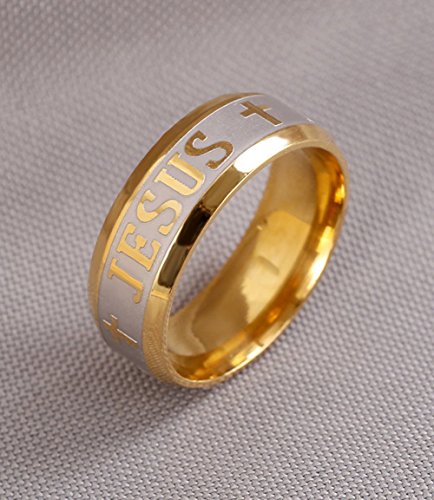 Tanyoyo 8MM stainless steel Gold Plated Jesus Cross Ring Size 6-14 4