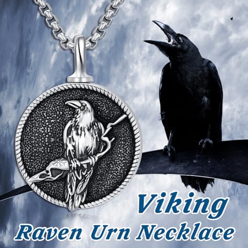 • 【Viking Cremation Jewelry】Odin raven cremation pendant made of 925 sterling silver. Lead-free, nickel-free, hypoallergenic, comfortable and fit. The size of the viking crow necklace is approximately 20*18 mm (0.78*0.70 inches). Adjustable stainless steel chain length 22+2 inches. The 2.0mm thickness stainless steel chain is stronger and not easy to break