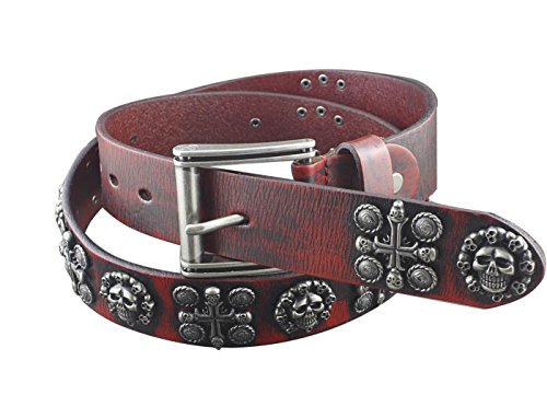 More information about vogueteen Mens Goth Skull Cross Vintage Red Genuine Leather Belt Biker Rock One Size