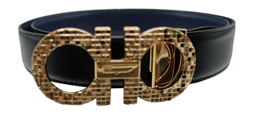 HOT ! Salvatore Ferragamo Gancini Logo Engraved Reversible Gold Buckle Belt