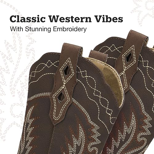 Rollda Kids Cowboy Boots Western Round Toe Cowgirl Boots for Boys Girls Toddler/Little Kid/Big Kid 6