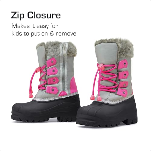 • Easy On/Off: With a smooth zip closure, these kids' snow boots are easy to put on and take off.
