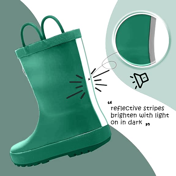 • 【Easy-on handers】Our design helps ensure ease of use for your little kids. With the reinforced handle design young kids can easily slide their rain boots on and off, without trouble.