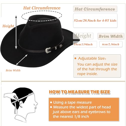 Cowboy Hat for Boys Girls Western Felt Fedora Hat for Kids 3-6 Years 7