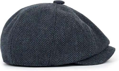 • Classic herringbone pattern, 8 Panel Button Top Flat Cap;