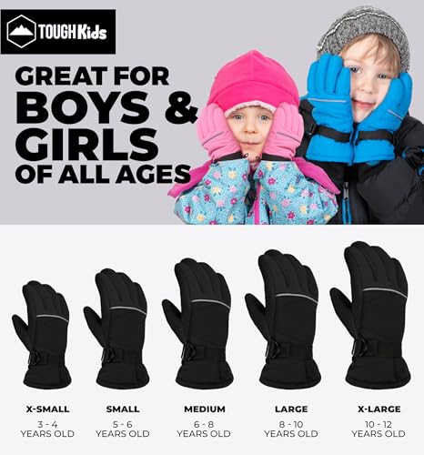 Tough Outdoors Kids Snow Gloves - Ski & Snowboarding Waterproof Insulated Winter Gloves for Girls, Boys & Toddlers 4