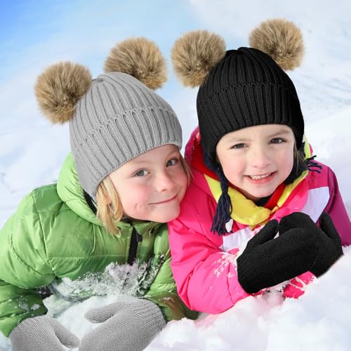 SATINIOR 3 Set Toddler Hat Glove Set, Kids Winter Hats Warm Knitted Beanie Mittens Gloves with Bow for Baby Girls Boys 0-6Y 3