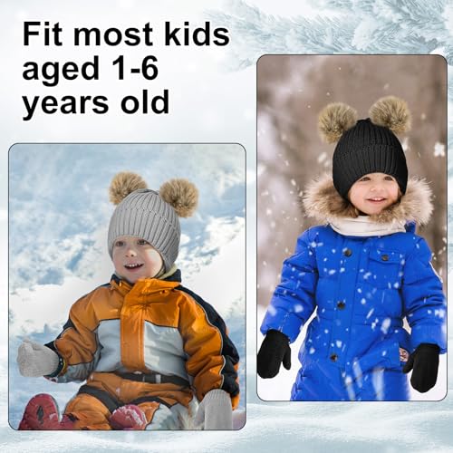 SATINIOR 3 Set Toddler Hat Glove Set, Kids Winter Hats Warm Knitted Beanie Mittens Gloves with Bow for Baby Girls Boys 0-6Y 6