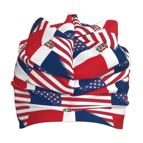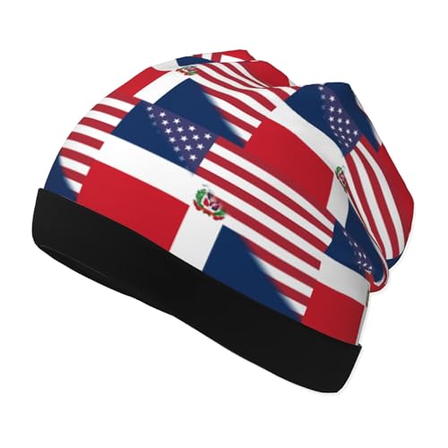 American Flag and Flag of The Dominican Republic Kids Leisure Elastic Knitted Hat Junior Large Size Knit Cap Child Beanie Black 1