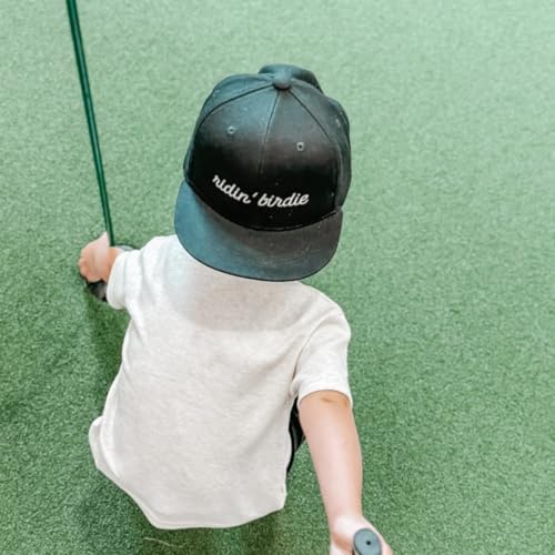 • Confident Golf Style: With sleek black fabric and bold white “Ridin’ Birdie” embroidery, this youth golf hat delivers a sharp, confident look for little golfers who love to play with style and personality.