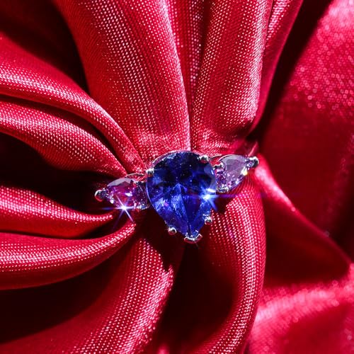 White Gold Plated Blue Water Drop Cubic Zirconia Engagement Rings Wedding Bridal Band Promise Rings Evening Parties Anniversary Valentine's Day Gifts Eternity Bands for Women 5