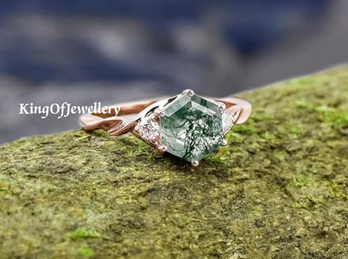 K O J 6 Prong Natural Moss Agate Gemstone Hexagon Shaped Engagement/Wedding Ring, Dainty Ring, Anniversary Ring, Bridal Ring, Vintage Ring, Best Gift For Her, Sterling Silver Ring, Stacking Ring 1