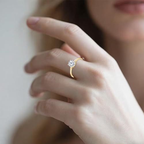 • Yellow Gold Rings for Women. The engagement ring is crafted only with solid 14K yellow gold. The 4 prongs of the diamond rings are securely placed so the diamond stone won’t fall out easily. Non tarnish gold rings for women.