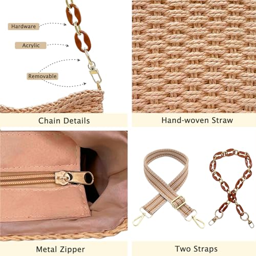 Small Straw Handbags for Women Crossbody Pocketbooks Woven Shoulder Purses Beach Tote Bag for Summer Vacation with Chain 4