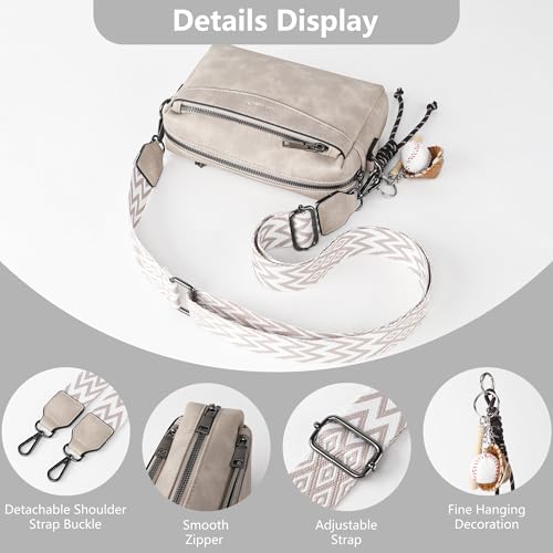 Crossbody Purses for Women, Triple Zip Leather Crossbody Bag Shoulder Handbags Womens Wallet with Wide Strap 4