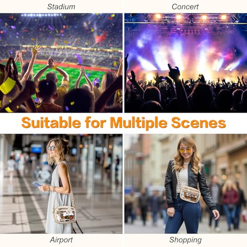 • Clear Bag Stadium Approved: The clear crossbody bag allows you to see the contents of your bag without opening it, helping you get through security quickly at concerts, airports, races, stadiums and other outdoor events. Measuring 10.2×2.3×6.7 in/26×6×17 cm, the stadium bag is compact and lightweight, suitable for outings.