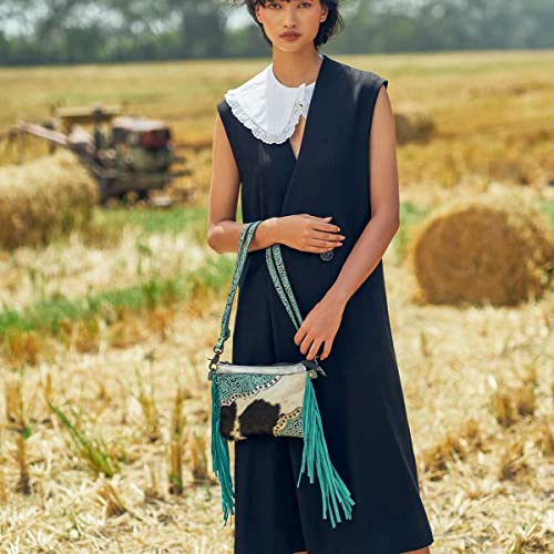 MB Genuine Leather Animal Print Silver Teal Turquoise Crossbody Bag with Fringe Women Stylish Ladies Fashion Designer 5