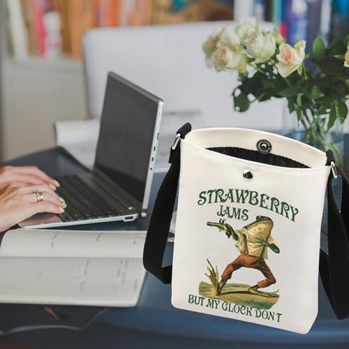 TOBGBE Funny Meme Gift Strawberry Jams But My Don't Crossbody Bag Western Cowgirl Frog Meme Gifts 5