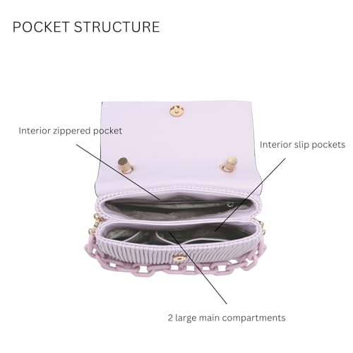 • Spacious & Organized: Measuring 9.5"L x 3.5"W x 11"H, this crossbody purse offers ample space for phone, wallet, keys and makeup. Two main compartments with interior slip pockets and zippered pocket to keep essentials neatly arranged and easily accessible