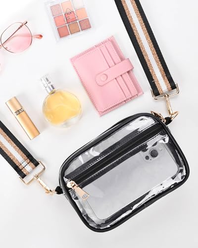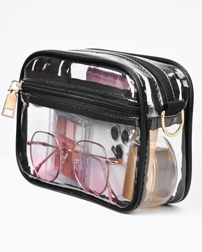 • Clear Bag Stadium Approved: Sized at 7.8"L x 2"W x 5.1"H, our fully clear design allows you to breeze through security checks without wasting time sorting your belongings. You can see everything in clear purse for women, eliminating the hassle of lost items. Perfect for concerts, sports events, and other activities where clear stadium bag is a must.