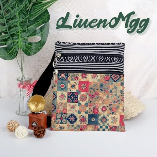 • 3. [Design] The Kaleidoscope Crossbody Bag has a vivid printing effect. On the front side, different bags has different patterns. On the back side, the bags have ethnic patterns. Due to manual cutting, the ethnic patterns may vary. Bags have brown lining, not easy to get dirty. Two pockets help you to better organize personal effects and the straps won't be too thin to hurt your shoulders.