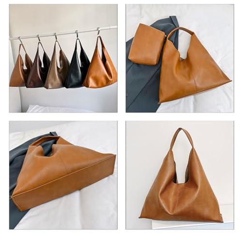 HOT ! Slouchy Hobo Bags for Women Tote Bag Retro PU Leather Crossbody Bag Soft Shoulder Purses Handbags Large Capacity 2pcs, B Black