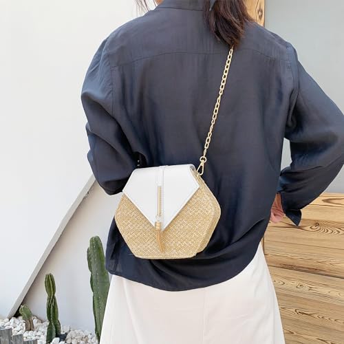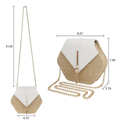 • 【Unique Design】Features a hexagonal structured shape, hardware tassel decoration and magnetic buckle flap closure, this straw beach bag is a perfect accessory that adds a touch of styles to your summer look