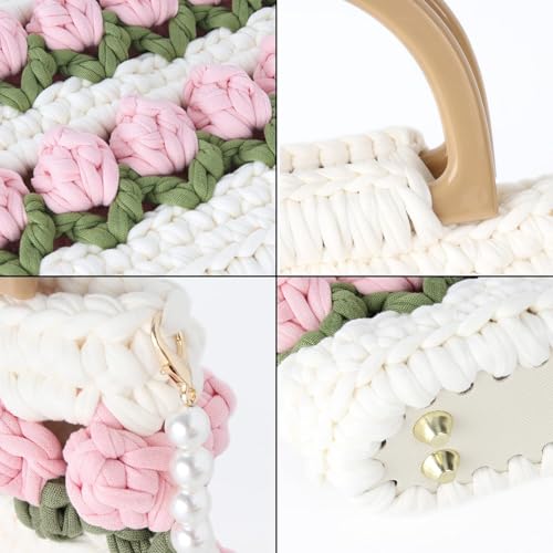 • Cute: Handcrafted top handle decorated with crocheted pink tulip, cute and lovely, unique design with sweet style, popularised by women.
