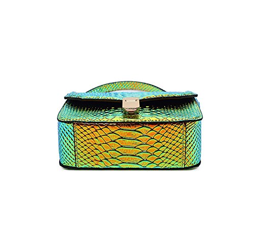 HOT ! Holographic Snakeskin Crossbody Bag Shoulder Bag Women's Hologram Leather Purse (L Green)