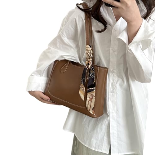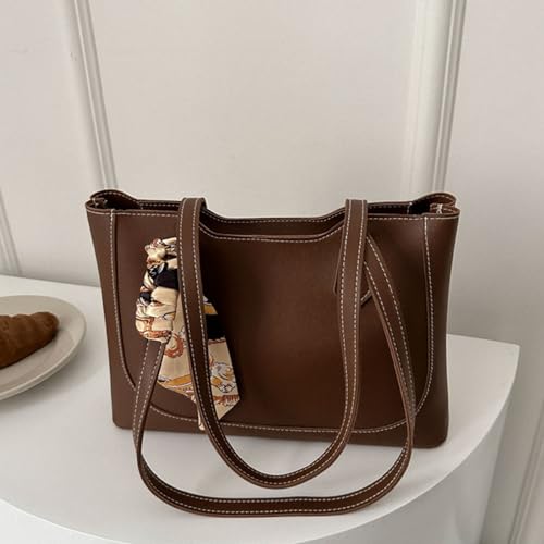 Womens PU Leather Shoulder Bag Large Capacity Handbag Female Shopping Dating Bag Student Bag for Work Travel.Light Brown 1