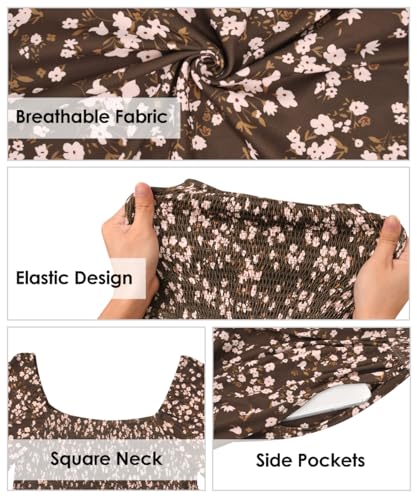 • Features - These plus size fall/winter dresses feature floral printed, puff long sleeves, square neck, elastic smocked high waist, two side pockets, flowy hem, and A-Line design, which make you look stunning and charming. The maxi-length design with pleats makes the dress more elegant.