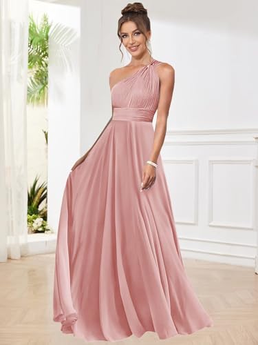 One Shoulder Bridesmaid Dresses for Women Pleated A Line Chiffon Long Evening Dress Formal Gown with Pocket 6