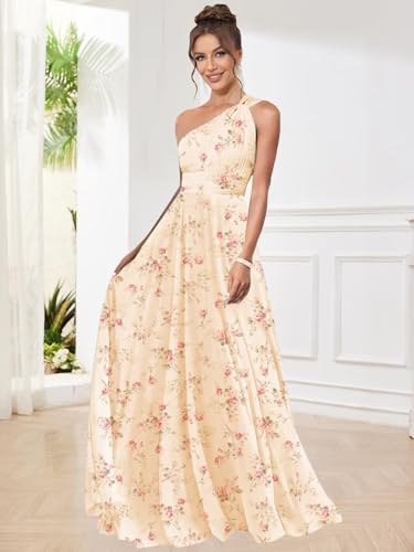 HOT ! One Shoulder Bridesmaid Dresses for Women Pleated A Line Chiffon Long Evening Dress Formal Gown with Pocket
