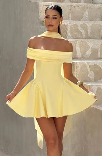 More information about Satin Short Homecoming Dresses for Teens with Scarf 2025 Off The Shoulder A-Line Mini Cocktail Party Dress