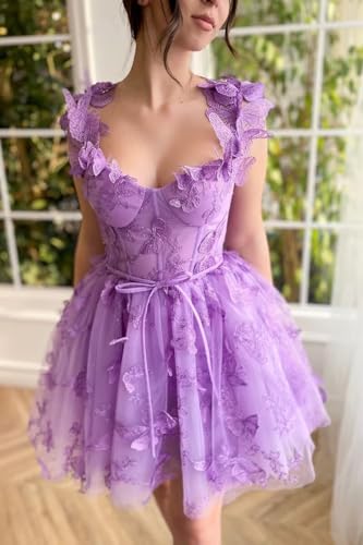 3D Butterfly Lace Applique Tulle Homecoming Dresses Sweetheart Mini Prom Cocktail Party Gowns for Teens 3